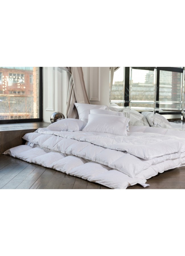 Конструкция подушки с бортиком создает дополнительный объем, обеспечивает поддержку головы и способствует расслаблению шеи во время сна. Бортик по периметру одеяла позволяет пуху распушиться на всю высоту бортика и сделает эти одеяла по-настоящему теплыми. Хлопковый сатин и отборный серый гусиный пух Тулузской породы позволили создать отличную коллекцию пуховых одеял и подушек. Стирка при температуре до 30°С.