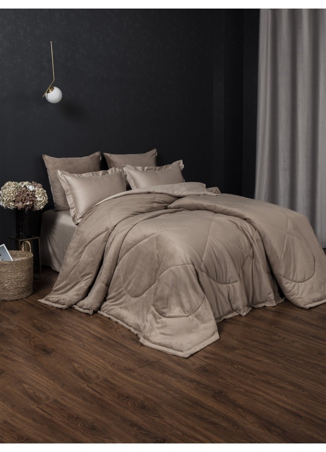 Коллекция Premium сегмента, постельное белье с одеялом «Lindor Fluffy». Двухстороннее одеяло: прохладный египетский хлопок и роскошный премиум-велюр, украшен элегантной стежкой. Комплект идеально подойдет для любителей поспать под кондиционером, велюровая сторона приятно окутает тело, сторона с египетским хлопком предназначена для любителей естественной прохлады в жару. Украшена геральдической лилией, выполненной из высококачественных страз. Двухсторонняя наволочка 50х70 декорирована геральдической лилией из страз. Наволочки 70х70 выполнены из комбинации нежного велюра и египетского хлопка. Простынь выполнена из египетского хлопка. Размерный ряд: евро, семейный. Доступные цвета: лаванда платина, серый беж, лайт пудра, карамель, крем, капучино трюфель, платина беж, графит. Комплекты изящно выложены в Брендовую подарочную упаковку «KAZANOV.A.».
