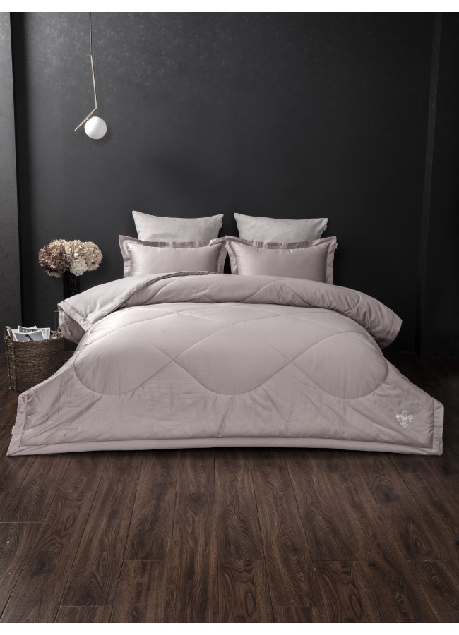 Коллекция Premium сегмента, постельное белье с одеялом «Lindor Fluffy». Двухстороннее одеяло: прохладный египетский хлопок и роскошный премиум-велюр, украшен элегантной стежкой. Комплект идеально подойдет для любителей поспать под кондиционером, велюровая сторона приятно окутает тело, сторона с египетским хлопком предназначена для любителей естественной прохлады в жару. Украшена геральдической лилией, выполненной из высококачественных страз. Двухсторонняя наволочка 50х70 декорирована геральдической лилией из страз. Наволочки 70х70 выполнены из комбинации нежного велюра и египетского хлопка. Простынь выполнена из египетского хлопка. Размерный ряд: евро, семейный. Доступные цвета: лаванда платина, серый беж, лайт пудра, карамель, крем, капучино трюфель, платина беж, графит. Комплекты изящно выложены в Брендовую подарочную упаковку «KAZANOV.A.».