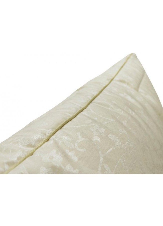 Подушка Lana выполнена в бежевом тике (100% хлопок) с серебряным рисунком. В качестве наполнителя выступает натуральная овечья шерсть. Она благотворно влияет на организм - стимулирует кровообращение, в облегчает ревматические и суставные боли. Входящий в её состав ланолин препятствует возникновению и развитию бактерий и вредных микроорганизмов.