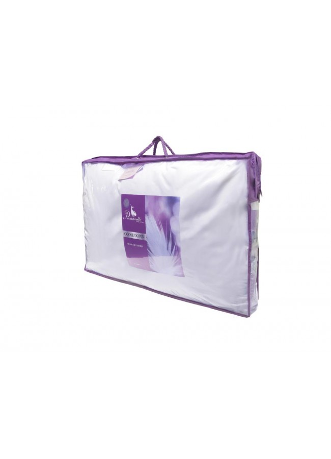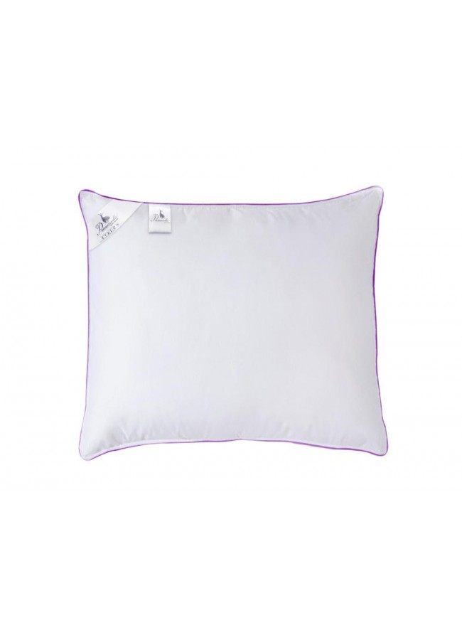 Пуховая подушка Ornella представлена в двух размерах: 52х72 см и 68х68 см, что позволяет выбрать именно тот вариант, который наиболее гармонично впишется в ваш интерьер. Оба размера изделия оформлены в изысканный белый цвет с лиловым кантом, что добавляет нотку элегантности и минимализма.