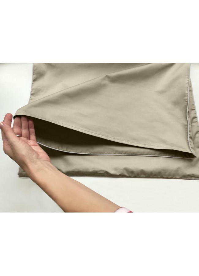 Наволочка в классическом бежевом цвете прекрасно сочетается с любыми тонами, усиливая мягкость светлых гамм и подчеркивая элегантность темных оттенков. Наволочка имеет клапан и выполнена из премиальной ткани Luxe-сатин, которая соткана из длиноволокнистого хлопка высшего сорта. В качестве декоративного украшения выступает нежный кант цвета экрю.