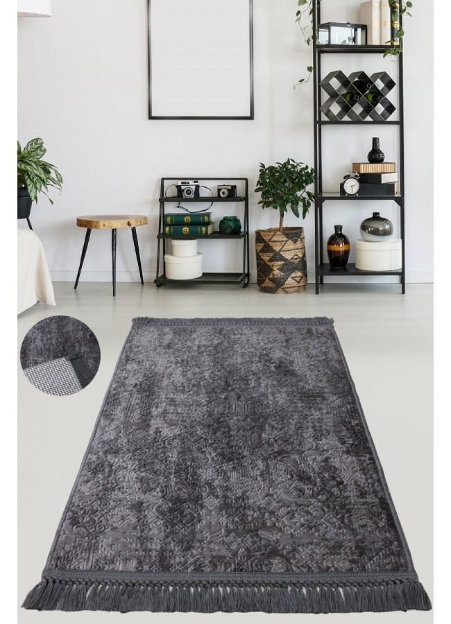 Ковер Карвен BUKET SACAKLI/софт жаккард с бахрамой 120*200 KV 034 Antrasit/Антрацит