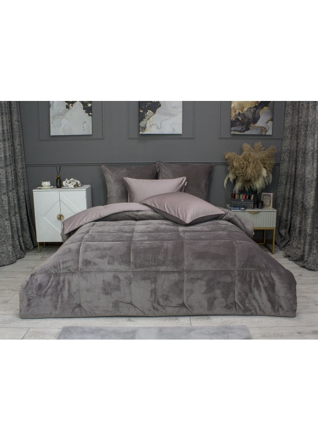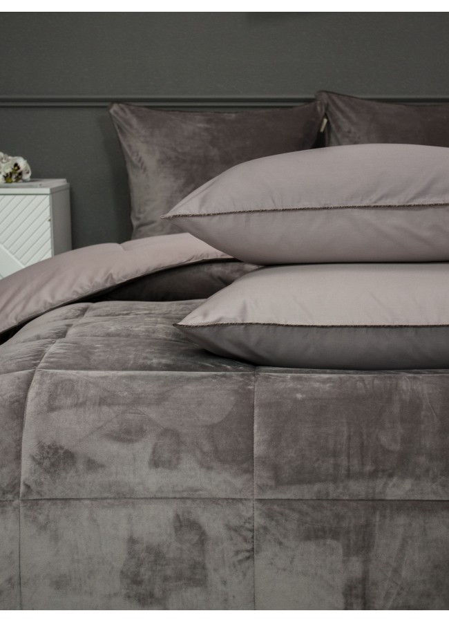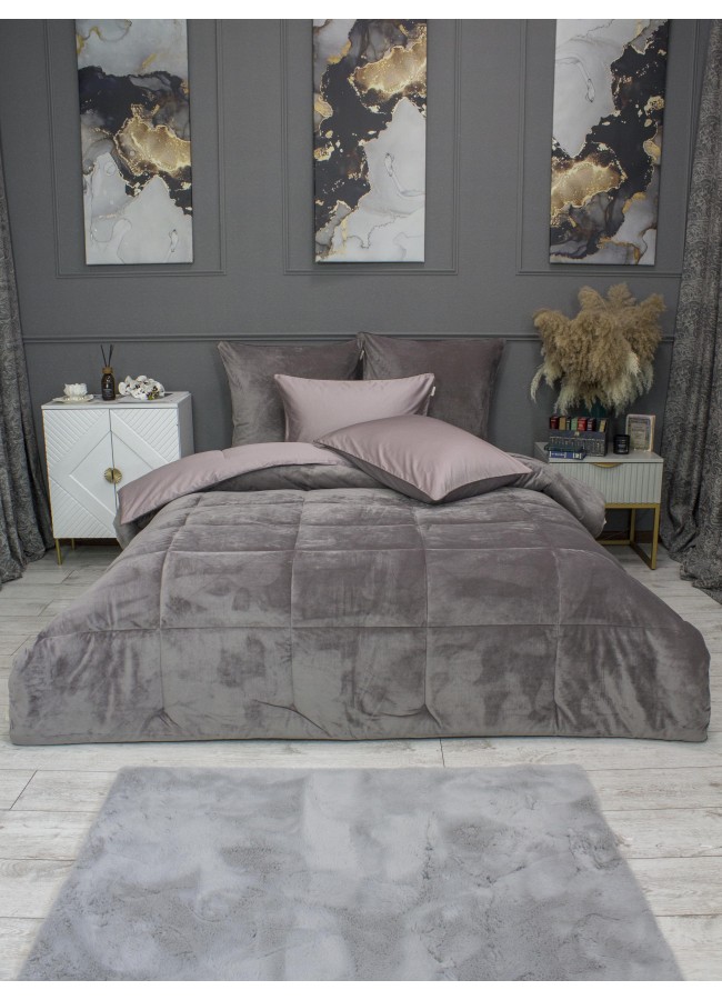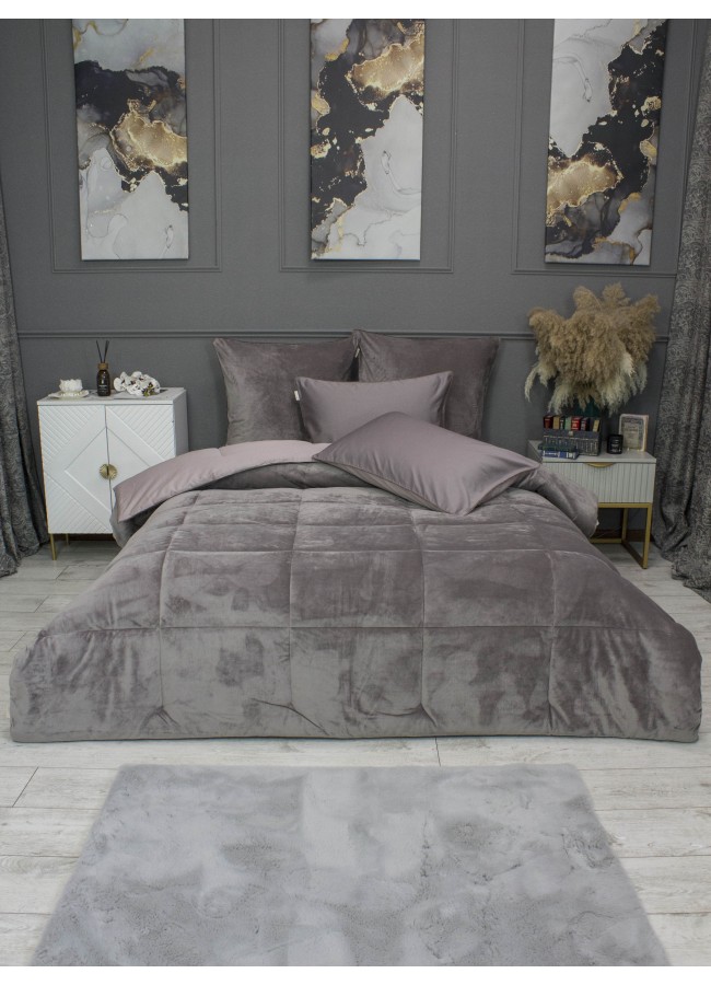 Sheffild Premium от KAZANOV.A. Формула современного комфорта, выраженная в цвете, фактуре и прикосновении. Sheffild Premium - коллекция комплектов постельного белья с двухсторонними теплыми одеялами. Рисунок стёжки Sheffild — узнаваемый мотив коллекции. Он вдохновлён архитектурой Шотландских замков: строгий ритм кладки отражён в дизайне коллекции. Отделка формирует характер ? Стёжка Sheffild — Шотландия у вас дома! Актуальная графика и стабильная форма ? Рулик из шенилла с богатой бархатной текстурой — подчёркивает линию изделий; применён в отделке одеяла и наволочек. Состав и материалы: A — 100% египетский хлопок (solid color): идеальная гладкость и контрастная нота. B — 100% египетский хлопок (solid color): в тон с велюром, усиливает глубину оттенков. C — Premium-велюр: тактильное удовольствие с муаровым переливом.Наполнитель в одеяле 100% эко-волокно «Микрогель» - лёгкость, гипоаллергенность, комфортная терморегуляция и равномерное тепло. Состав комплекта ? Одеяло: A / C ? Наволочки 50?70: A / B ? Наволочки 70?70: A / C ? Простыня: B — гладкая база в тон хлопковой стороне одеяла; «собирает» комплект и подчёркивает фактурный акцент. Элегантное решение от KAZANOV.A. переворачивая одеяло и подушки, вы легко создаёте новые стилистические акценты: от монохромной сдержанности до выразительного контраста. Цветовая гамма: графит песочный · графит пудра жемчуг · капучино латте · пыльная роза серебро· бургунди коралл · брауни крем · трюфель корица · бежевый жемчуг · мурена платина· терракот пепел. Комплектации ? Евро: одеяло 200?220 (1) наволочки 50?70 (2) наволочки 70?70 (2) простыня 245?250 (1) ? Семейное: одеяло 155?210 (2) наволочки 50?70 (2) наволочки 70?70 (2) простыня 245?250 (1) ? Полуторное: одеяло 155?210 (1) наволочка 50?70 (1) наволочка 70?70 (1) простыня 160?220 (1) Уход ? деликатная стирка при 30 °C ? легко стирается и быстро сохнет Упаковка ? дизайнерская коробка KAZANOV.A.; выкладка Handmade подчёркивает премиальный статус коллекции и делает её безупречным подарком. Sheffild Premium от KAZANOV.A. - двухсторонняя эстетика, которая чувствует ваше настроение