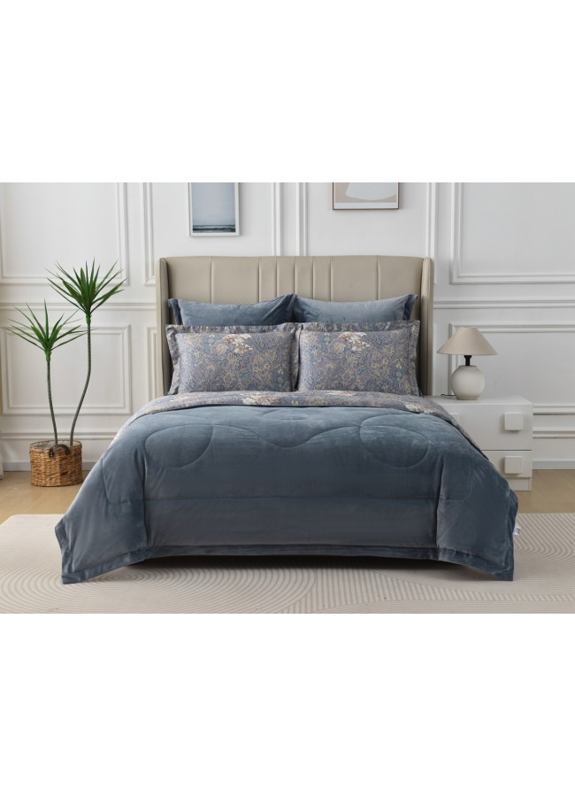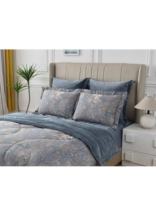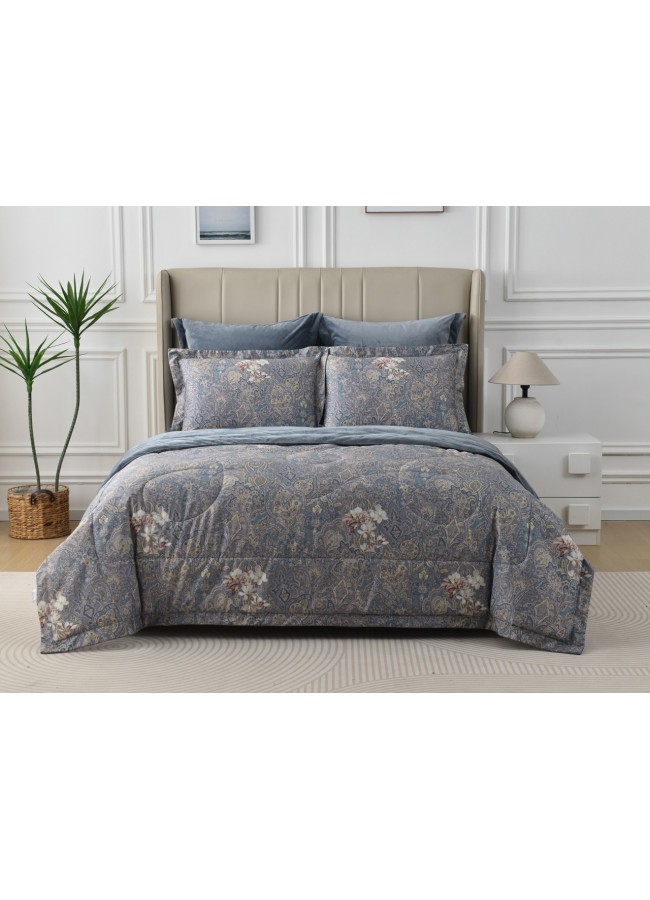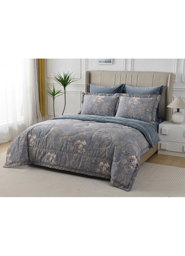 Откройте для себя новый стандарт домашнего уюта Представляем вам коллекцию комфортеров «Ренато» — воплощение изысканности и непревзойдённого комфорта. Каждый элемент этой коллекции создан с любовью к деталям и заботой о вашем сне. Революция в мире постельного белья Двустороннее одеяло — настоящее произведение искусства. Лицевая сторона из премиального макосатина 300ТС с изысканным цифровым принтом завораживает своей утончённой красотой. Изготовленный из отборного египетского хлопка, этот материал создаёт идеальный микроклимат для вашего сна. Велюровая сторона с благородным блеском подарит вам незабываемые ощущения нежности и уюта. Бархатистая текстура и мягкий блеск превращают каждое прикосновение в истинное наслаждение. Превосходное качество в каждой детали Макосатин — элитный хлопок высочайшей плотности, обеспечивающий непревзойдённую мягкость Велюр — роскошная вискоза с изысканным блеском Экофайбер — инновационный наполнитель с превосходными терморегулирующими свойствами Комплектация, созданная для вашего комфорта В коллекцию входят: Двустороннее одеяло в трёх размерах Простыня из благородного сатина Стильные наволочки с оригинальным дизайном Декоративные наволочки из нежного велюра Универсальность для любого сезона Благодаря современным материалам и продуманной конструкции, комплект «Ренато» станет вашим надёжным спутником в любое время года. Летом он подарит прохладу, а зимой — уютное тепло. Подарочная упаковка премиум-класса Каждый комплект «Ренато» поставляется в стильной подарочной коробке, что делает его идеальным выбором для особенного подарка. Забота о качестве Деликатная стирка при 30°C сохранит первозданную красоту и качество вашего комплекта на долгие годы. Погрузитесь в мир безупречного комфорта с коллекцией «Ренато» — где каждая деталь создана для вашего идеального сна. Подарите себе и своим близким незабываемые моменты уюта и наслаждения.