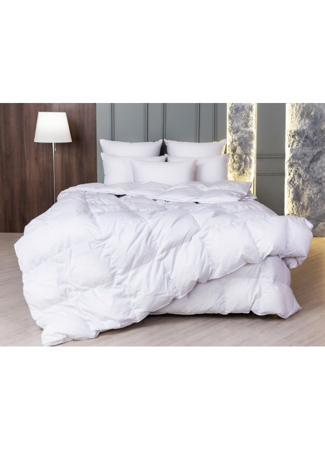Качество пуха: Улучшенный (600–650 ед.) Более выраженная объёмность и стабильная упругость. Наполнитель сохраняет форму и создаёт ощущение сбалансированного комфорта.