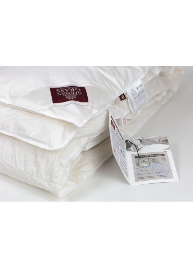Город Бра?мше в Германии и разработанные ткачами этого поселения способы финишной обработки тканей известны производителям во всем мире уже второе столетие и поэтому маркировка «Bramscher Tuch» является своеобразным знаком качества в индустрии. Ей отмечены все изделия коллекции Royal Down Grass, указывая на исключительные качества. Супертонкий мако-батист (Mako-ultra fine batiste), из 100% египетского хлопка, прошедший финишную обработку SanProCare® Sensitive, позволяет ткани достичь состояния «пуховой мягкости». Ткани сертифицированы по OEKO-TEX® Standard 100 – стандарту безопасности текстильных изделий. Наполнителем для эксклюзивной коллекции служит гусиный пух категории "Экстра" повышенной упругости (Fill Power 850 ед). При малом весе он обладает особенной пушистостью и лучшей теплоизоляционной способностью. Для обеспечения особых гигиенических свойств, изделия прошли обработку методом озонирования Ozone Pure 360 Grass. Стирка при температуре до 30°С.