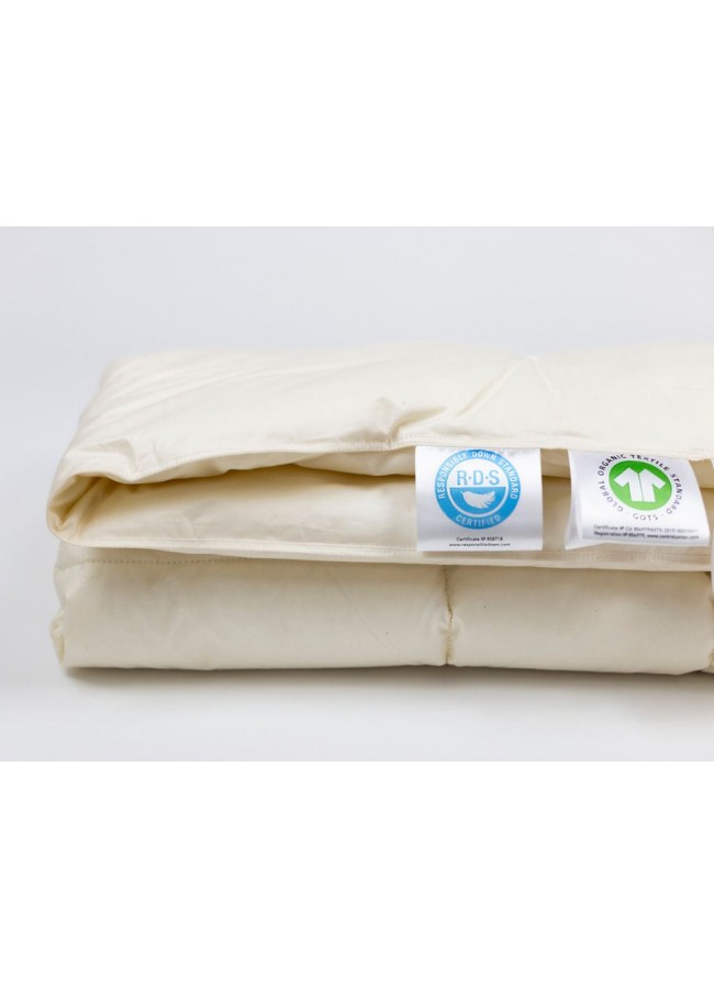 В изделиях этой коллекции объединены общемировые тенденции в применении экологичных материалов. Органический хлопок собирается вручную и выращивается без использования пестицидов и искусственных удобрений. Волокно не обработается соединениями хлора, оптическими отбеливателями или хлорированными углеводородными соединениями. Каждый этап производства контролируется по требованиям создания 100% органических продуктов. Ткани, сертифицированные по "Global Organic Textile Standard", и пух категории «Экстра», сертифицированный по европейской системе "Стандарт ответственного производства пуха" (RDS), объединенные в изделие, - вот что нужно, чтобы быть уверенным в отсутствии влияния техногенного мира на здоровье вашего малыша. Метод изготовления одеял в этой коллекции делает их воздушными и теплыми, а подушки созданы по специальной технологии, обеспечивающей правильное положение головы ребенка во время сна. Рекомендована стирка при температуре до 30°С.