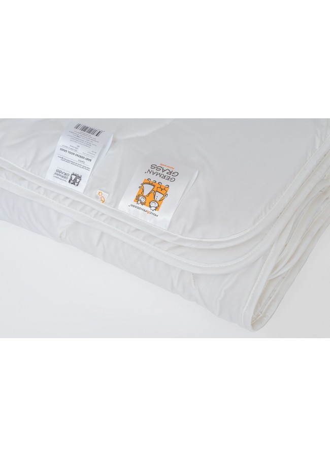 Тандем хлопка и овечьей шерсти - одно из самых классических сочетаний натуральных материалов для постельных принадлежностей. Сатиновое плетение ткани придает изделиям роскошный внешний вид. Дышащий наполнитель отлично поддерживает комфортную температуру в кроватке. Материалы из 100% хлопка и натуральной овечьей шерсти обеспечивают перенос влаги, что препятствует появлению опрелостей у детей, а ланолин, содержащийся в шерсти, благоприятно действует на кожу ребенка. Допустима стирка при температуре до 30°С.