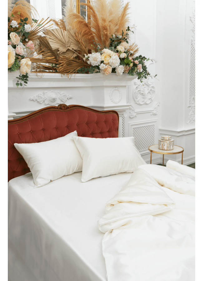 Принадлежность постельного белья коллекции Silk Bliss Grass к сегменту LUXURY определяет состав и свойства ткани, из которых он изготовлен: двусоставный шелковый сатин (EDELSATEEN) высокой плотности (19 momme), основой которого являются нити из натурального шелка высшего сорта Mulberry* (не менее 70%), обладающего прекрасной терморегуляцией и гигиеническими свойствами, а точно рассчитанная добавка хлопковых нитей (не более 30%) делает ткань плотной, более гигроскопичной и особо износоустойчивой. Ткани, используемые в коллекции, сотканы таким образом, что они тактильно приятные и гладкие по лицевой стороне (снаружи изделий), а с изнанки (внутри изделий), хлопковые нити, входящие в состав ткани, препятствуют бесконтрольному перемещению простыни по матрасу, а подушки и одеяла остаются внутри пододеяльников и наволочек без смещения. Постельное белье Silk Bliss Grass выполнено в лаконичном однотонном дизайне, имеющем глубокие, переливающиеся тонами расцветки: в глубоком черном, сияющем белом, светло-сером и шоколадном тонах - станет украшением вашей спальни, обеспечивая истинное ощущение роскоши и комфорта и во время сна. Внимание! Изделия коллекции, как и все шелковые вещи, требуют особого ухода: рекомендуемая стирка жидкими моющими средствами для цветного белья без использования отбеливающих и агрессивных моющих средств, в деликатном режиме при температуре до 30°С. * Шелковое постельное белье, при длительном тактильном контакте, когда аминокислоты и белки, входящие в состав натурального шелка, оказывают благотворное воздействие на кожные покровы и волосы человека, станет настоящим подарком Вашему здоровью. *Обратите внимание, что в связи с особенностями цветопередачи разных устройств, оттенок изделия на экране может незначительно отличаться от реального.