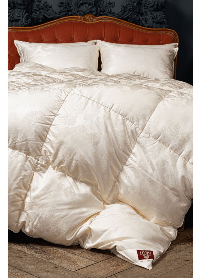 Сочетание сливочного пуходержащего жаккардового сатина PAISLEY из натурального 100% шелка и первоклассного пухового наполнителя категории "Экстра" повышенной упругости (Fill Power не менее 850 ед.) - это совершенный эксклюзив в мире постельных принадлежностей. Высокая плотность ткани и двойная отстрочка не позволят пуху мигрировать из изделия и не пропустят частички пыли внутрь. Эксклюзивные ткани создаются на единственном производстве в Европе - старейшей немецкой ткацкой фабрике - в лимитированном количестве. Для того, чтобы ткать шелковый пуходержащий жаккард с узором, необходимо обладать высочайшим уровнем мастерства. Кассетные одеяла ручной работы предназначены для использования в холодное время года. Каждая кассета размером 40х40 см наполнена отборным белым пухом вручную.Для обеспечения особых гигиенических свойств, изделия прошли обработку методом озонирования Ozone Pure 360 Grass. Как и всякий эксклюзив, изделия этой коллекции требуют особого ухода при обслуживании: мы не рекомендуем их стирать, допускается только сухая чистка изделий.