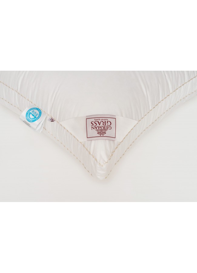 Коллекция King Down Grass — это королевство, в котором правит двуединая монархия тончайшего премиум-сатина и отборного гусиного пуха категории «Экстра». Немецкий хлопковый сатин высочайшей плотности соткан из тончайших нитей (Premium Satin - Nе 120/120 493 ТС) и прошел финишную обработку SanProCare® Sensitive, обеспечивающую усиленную гигроскопичность и придающую ей «пуховую мягкость». Особо тонкий, мягкий и «нешуршащий» чехол обладает повышенной износостойкостью и предотвращает проникновение пылевых клещей внутрь изделий. Наполнителем служит пух высочайшего качества, отобранный на гусиных фермах Сибири, которая, по утверждению биологов, является зоной проживания гусей, носящих пух максимально больших размеров, что, безусловно, влияет на пуховую массу положительно и наполнитель имеет повышенный коэффициент упругости (Fill Power), достигающий значений в 850 ед. Конструкция изделий коллекции и технология их производства не менее роскошны, чем применяемые в ней материалы: созданные вручную кассетные одеяла с бортиком, состоящие из равномерно заполненных пухом box-кассет, отличаются воздушностью и обеспечивают сбалансированный микроклимат. Широкий бортик в подушках создает дополнительную поддержку головы и мягко разгружает шею во время сна. В трехкамерных моделях внутреннее пухо-перовое ядро обеспечивает несминаемый объем и увеличивает срок службы изделий. Для обеспечения особых гигиенических свойств, изделия прошли обработку методом озонирования Ozone Pure 360 Grass. Допускается стирка при температуре до 30°С.