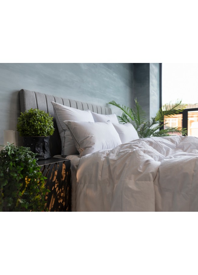 Качество пуха: Улучшенный (600–650 ед.) Более выраженная объёмность и стабильная упругость. Наполнитель сохраняет форму и создаёт ощущение сбалансированного комфорта.