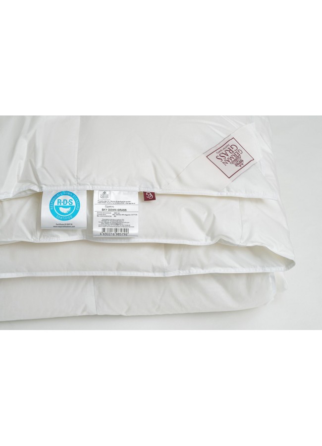 Ткани, отмеченные маркировкой «Bramscher Tuch» – это безусловный знак качества и великолепный результат работы специалистов из города Бра?мше в Германии. Высочайшей оценки требует буквально все: от высококачественного сырья и тончайшей пряжи до заключительной эксклюзивной отделки тканей. Этим знаком отмечены все изделия коллекции SKY DOWN GRASS, подтверждая их превосходное качество. Ткань Супертонкий сатин состоит из волокон TENCEL® и длинноволокнистого египетского хлопка, прошедшего финишную обработку SanProCare® Sensitive. Она позволяет материалу усиленно поглощать и отдавать влагу. Ткани сертифицированы по OEKO-TEX® Standard 100 – международному стандарту безопасности текстильных изделий. Наполнителем для эксклюзивной коллекции служит гусиный пух категории "Экстра" повышенной упругости (Fill Power 850 ед). При малом весе он обладает особенной пушистостью и лучшей теплоизоляционной способностью. Для обеспечения особых гигиенических свойств, изделия прошли обработку методом озонирования Ozone Pure 360 Grass. Стирка при температуре до 30°С.