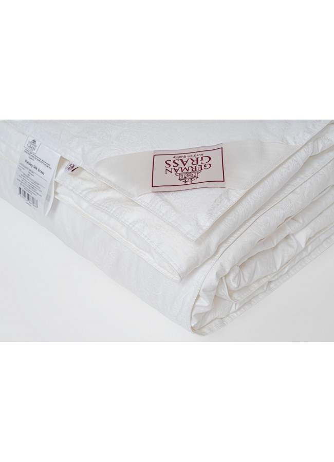 Paisley Silk Grass – это лимитированная коллекция подушек и одеял, изготовленных вручную из натурального шелкового наполнителя высшего качества Mulberry. Ткань изделий - жаккардовый сатин высокой плотности цвета белого жемчуга из 100% Egyptian COTTON. Ручной процесс изготовления позволяет тщательно контролировать качество производства на каждом этапе, что вкупе с прекрасными материалами определяет высокий уровень изделий. Мы не рекомендуем стирать одеяла и подушки, допускается только сухая чистка изделий.