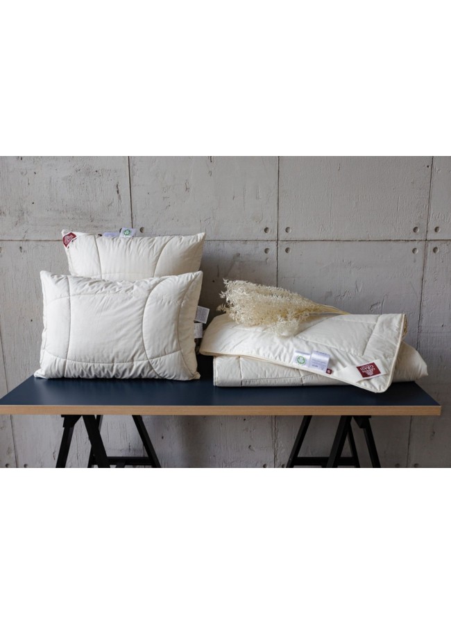 Основной наполнитель в коллекции - легкий и воздушный эко-наполнитель, созданный на основе технической конопли с добавлением волокон льна. Натуральный наполнитель обеспечивает великолепную циркуляцию воздуха и придает изделиям антибактериальный эффект; обладает антистатичными, гипоаллергенными и влагоотводящими свойствами. Тончайший батист имеет сертификат GOTS, свидетельствующий о том, что сырье для его создания выращено в контролируемом биологическом хозяйстве, без использования химических добавок и соответствует строгим экологическим критериям. Ткань дополнительно прошла финишную обработку SanProCare® Sensitive и отмечена знаком «Bramscher Tuch», что является безусловным знаком качества от специалистов из города Бра?мше в Германии.В коллекции представлены всесезонные и легкие модели, что позволит подобрать идеальный продукт, подходящий вашим индивидуальным запросам. Стирка при температуре до 40С°.