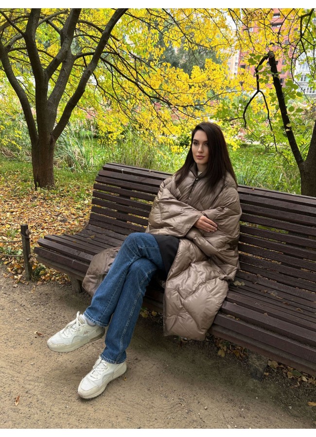 Дорожный плед-пончо пуховый Travel Cape Plaid Grass Milk Chocolate 130х170