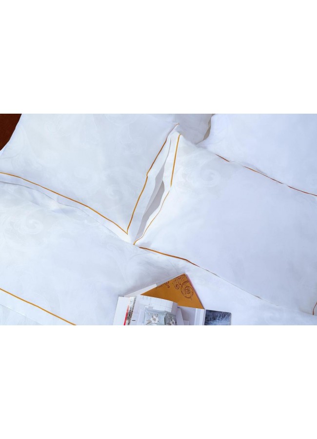 Постельное белье с элегантной вышивкой Baratto золотого цвета станет украшением Вашего спального места. Вышивка обрамляет периметр наволочек и верх пододеяльника. Белоснежный сатин с жаккардовым рисунком дополняет комплект и наделяет его высокой воздухопроницаемостью, гипоаллергенность и прочностью. Выбрав комплект с вышивкой Baratto Вы приобретете королевский сон. Упаковка – подарочный чемоданчик. Ткань: сатин-жаккард (100% хлопок).