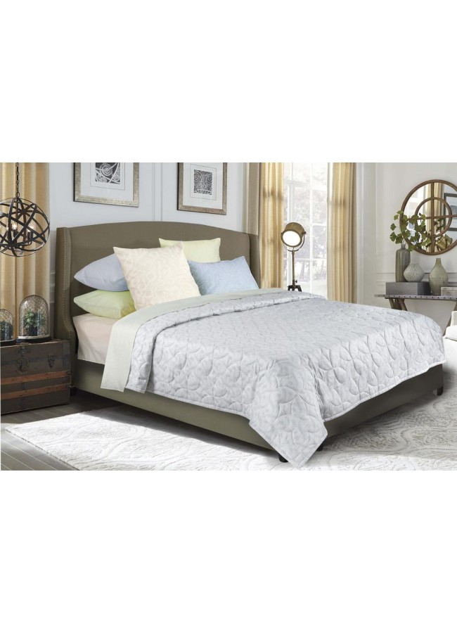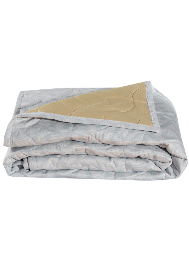 Изделие выполнено из хлопкового двухслойного жаккарда в серо-голубом цвете. Ткань мягкая, эластичная, приятная на ощупь, а вкупе с натуральным хлопковым наполнителем одеяло-покрывало Organic Cotton приобретает высокую воздухопроницаемость и терморегуляцию, что особенно важно в летний период.