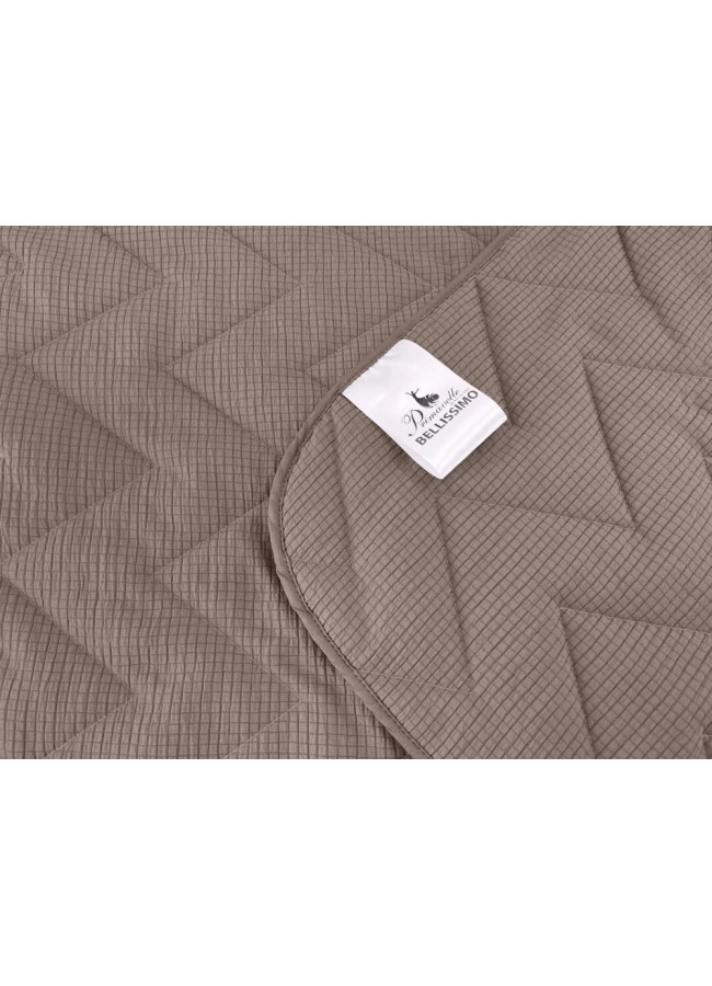 Двустороннее покрывало Muslin в цвете ароматного какао, легкое и нежное, позволит создать атмосферу скандинавской эстетики в интерьере. Жаккардовый муслин имеет приятную жатую фактуру. Содержание 40% хлопка в составе ткани придает изделию мягкость и антистатичность, нити полиэстера повышают износостойкость, защищают от пиллинга и усадки. Классическая модель с тонкой окантовкой края и лаконичная ниточная стежка делают покрывало не только эстетически привлекательным, но и практичным.