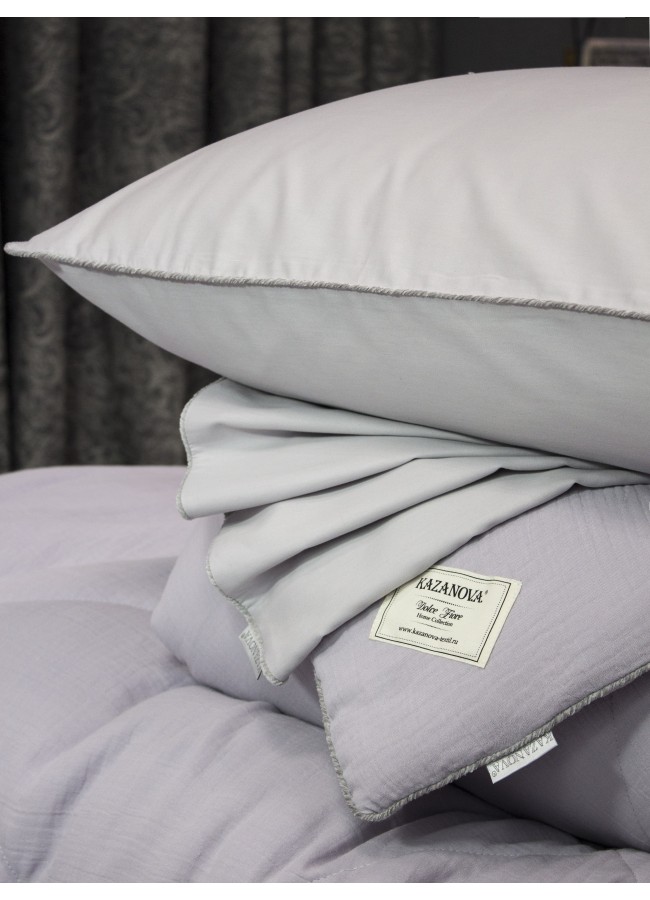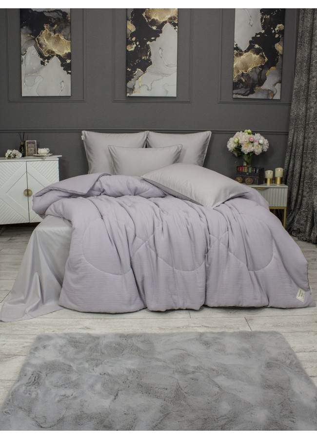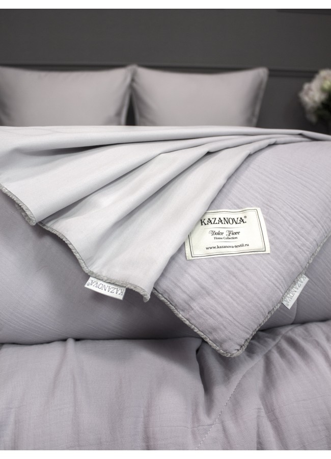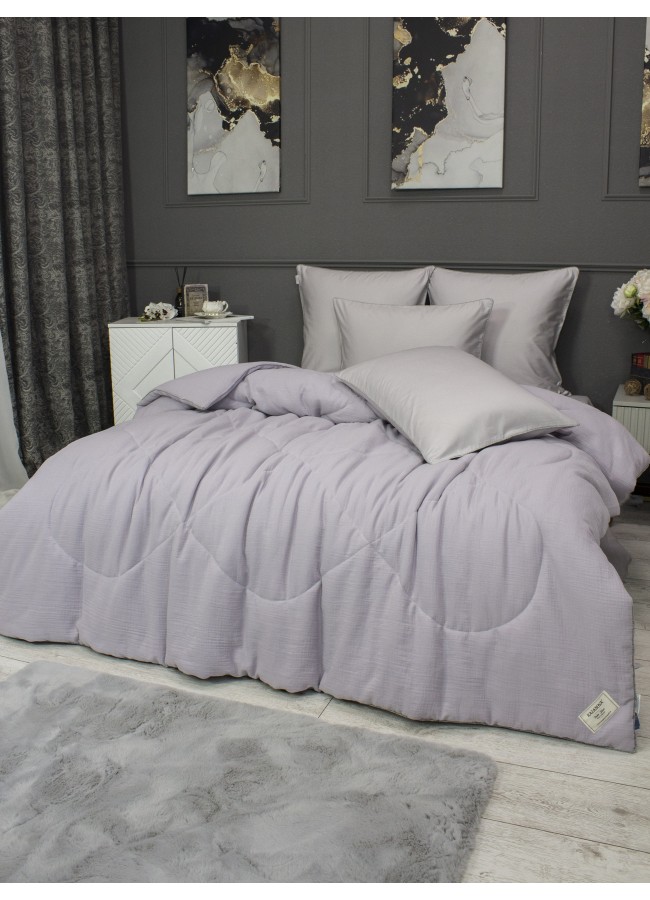 Комплект с одеялом Muslin & Satin Solid color (лаванда жемчуг) комплект Евро KAZANOV.A