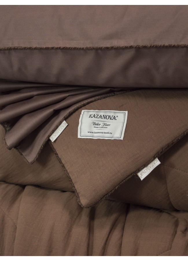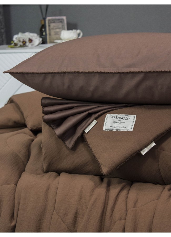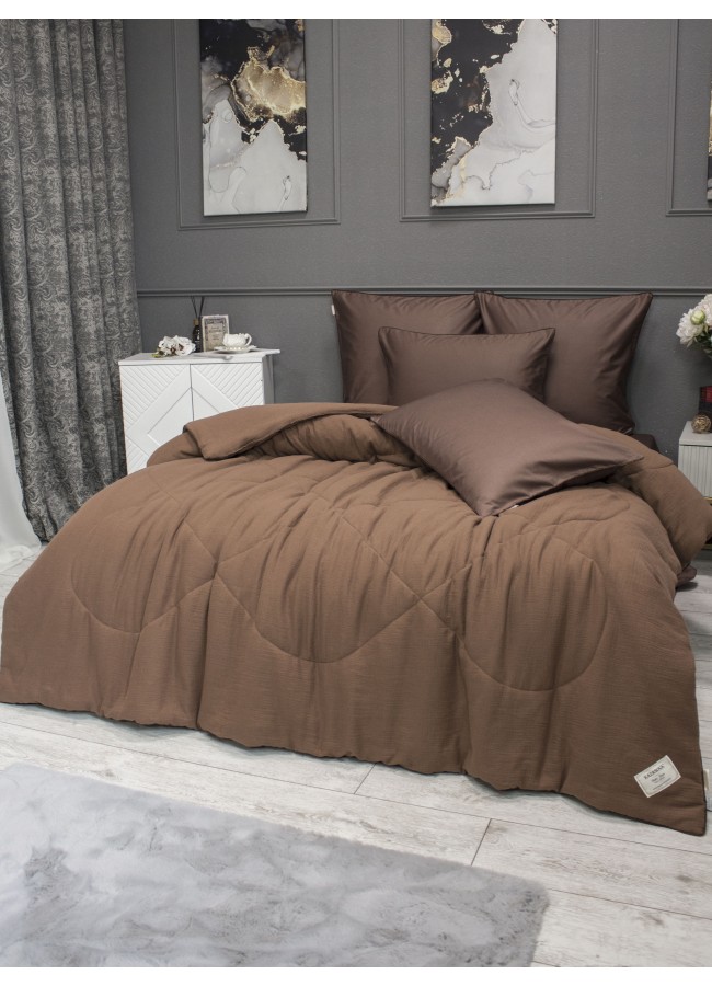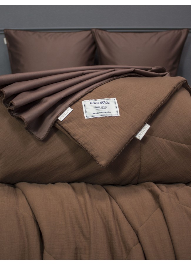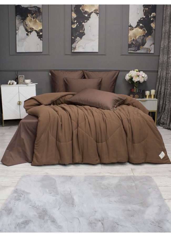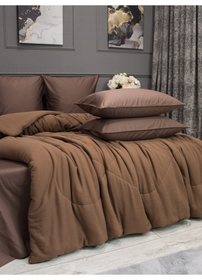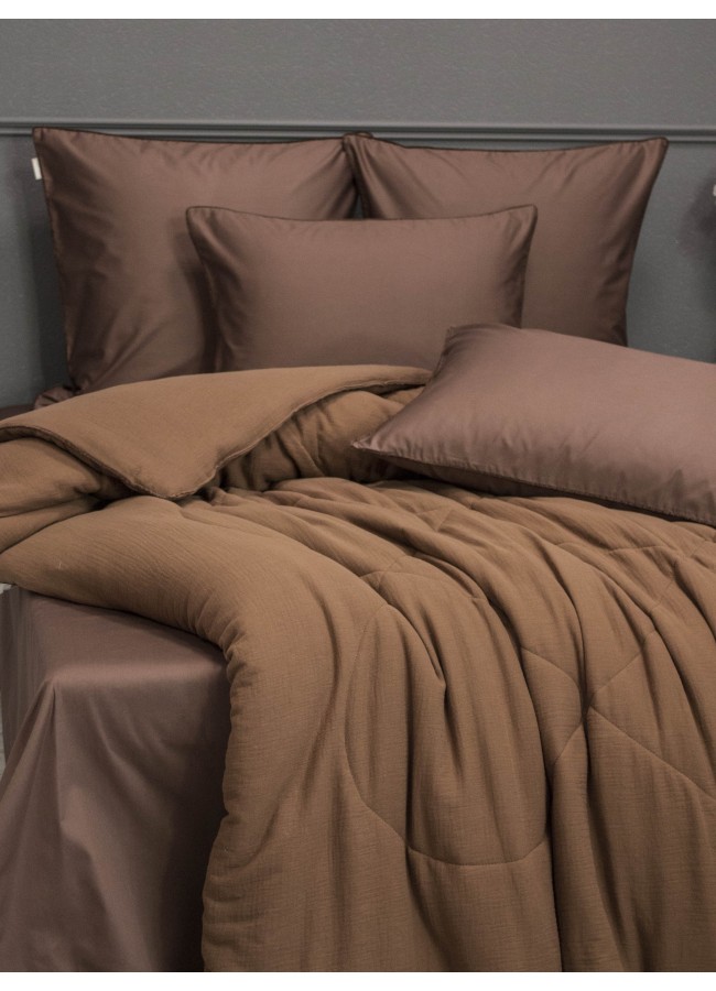 Комплект с одеялом Muslin & Satin Solid color (брауни охра) комплект Евро KAZANOV.A