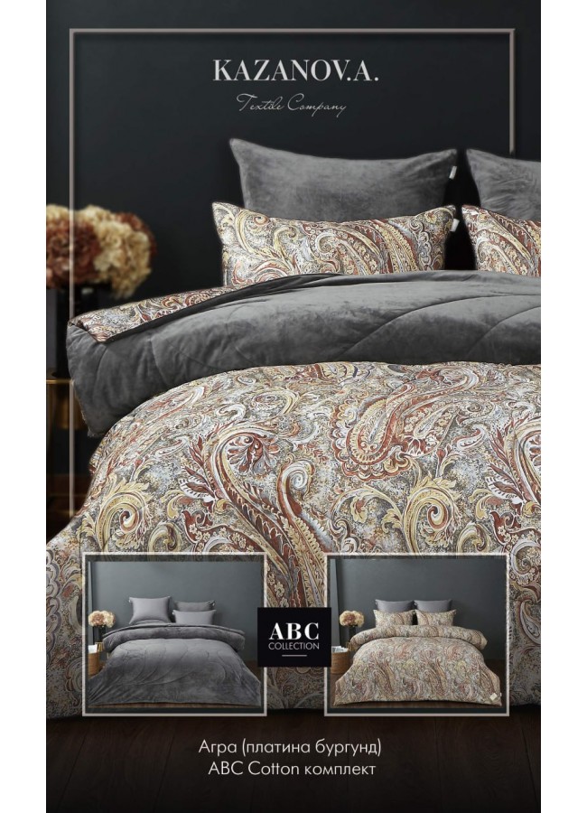 Комплект с одеялом Агра (платина бургунд) АВС Cotton комплект Евро KAZANOV.A
