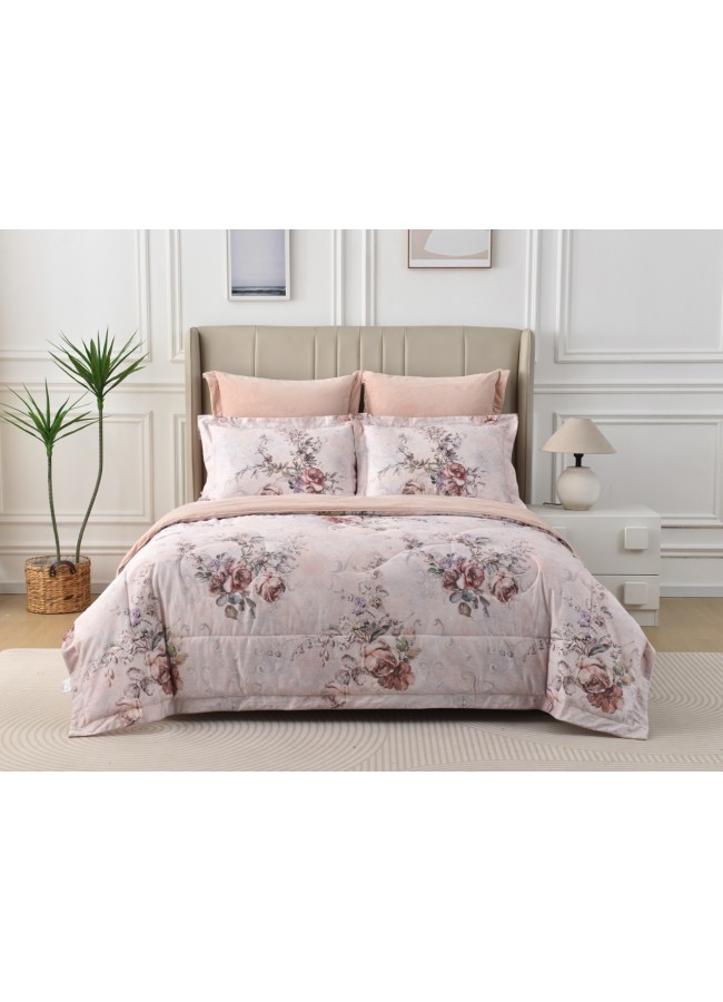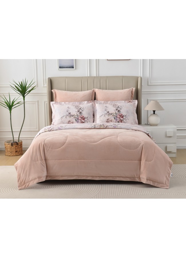 Откройте для себя новый стандарт домашнего уюта Представляем вам коллекцию комфортеров «Ренато» — воплощение изысканности и непревзойдённого комфорта. Каждый элемент этой коллекции создан с любовью к деталям и заботой о вашем сне. Революция в мире постельного белья Двустороннее одеяло — настоящее произведение искусства. Лицевая сторона из премиального макосатина 300ТС с изысканным цифровым принтом завораживает своей утончённой красотой. Изготовленный из отборного египетского хлопка, этот материал создаёт идеальный микроклимат для вашего сна. Велюровая сторона с благородным блеском подарит вам незабываемые ощущения нежности и уюта. Бархатистая текстура и мягкий блеск превращают каждое прикосновение в истинное наслаждение. Превосходное качество в каждой детали Макосатин — элитный хлопок высочайшей плотности, обеспечивающий непревзойдённую мягкость Велюр — роскошная вискоза с изысканным блеском Экофайбер — инновационный наполнитель с превосходными терморегулирующими свойствами Комплектация, созданная для вашего комфорта В коллекцию входят: Двустороннее одеяло в трёх размерах Простыня из благородного сатина Стильные наволочки с оригинальным дизайном Декоративные наволочки из нежного велюра Универсальность для любого сезона Благодаря современным материалам и продуманной конструкции, комплект «Ренато» станет вашим надёжным спутником в любое время года. Летом он подарит прохладу, а зимой — уютное тепло. Подарочная упаковка премиум-класса Каждый комплект «Ренато» поставляется в стильной подарочной коробке, что делает его идеальным выбором для особенного подарка. Забота о качестве Деликатная стирка при 30°C сохранит первозданную красоту и качество вашего комплекта на долгие годы. Погрузитесь в мир безупречного комфорта с коллекцией «Ренато» — где каждая деталь создана для вашего идеального сна. Подарите себе и своим близким незабываемые моменты уюта и наслаждения.