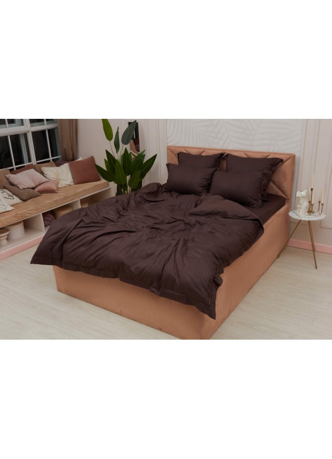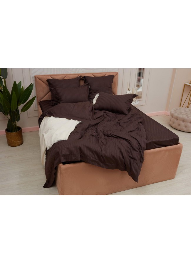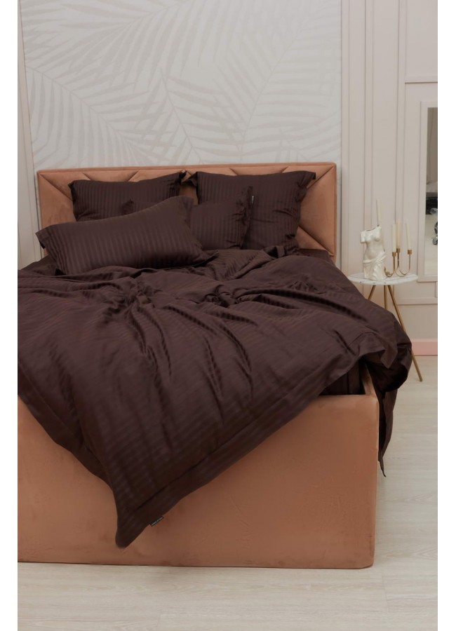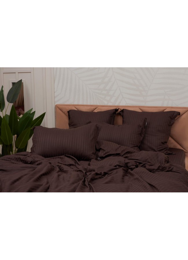 Постельное белье, Моне (шоколад) страйп сатин Евро, Евро-СС-М-14