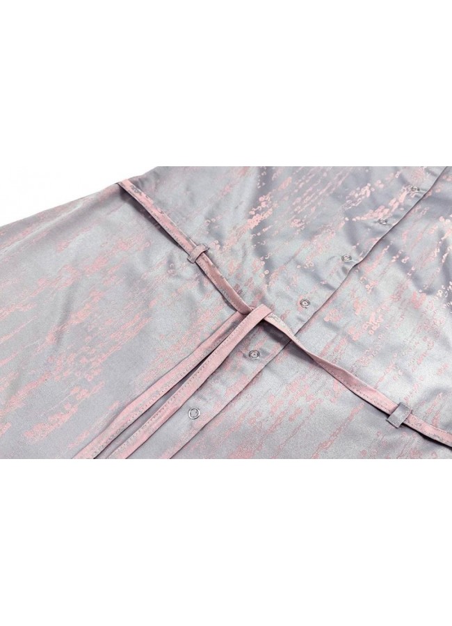 Модель: на кнопках, контрастные манжеты, пояс-кулиска, отделка атласным кантом. Цвет: серо-розовый. Упаковка: подарочный короб