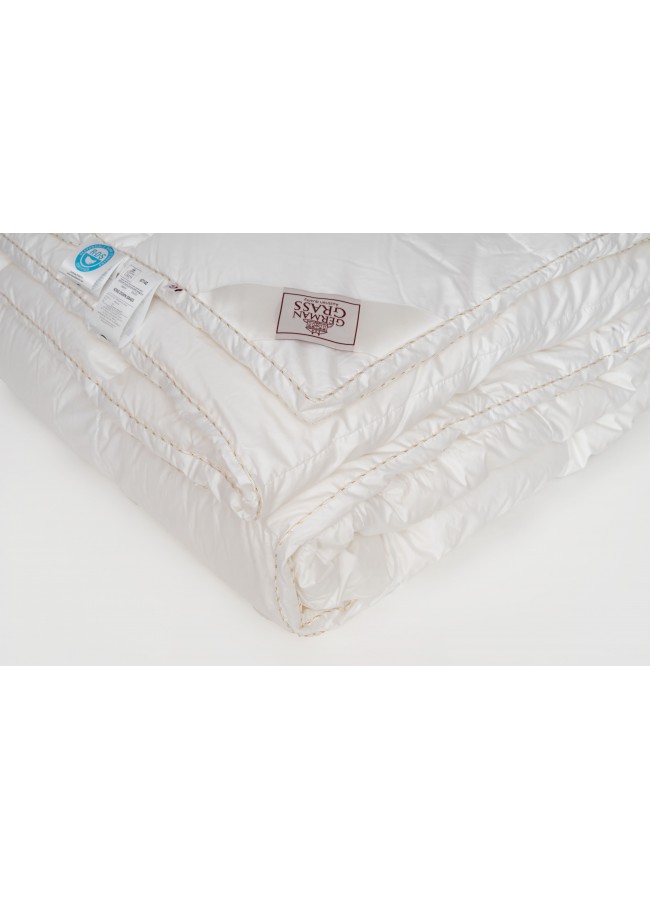 Немецкий хлопковый сатин высочайшей плотности соткан из тончайших нитей (Premium Satin - Nе 120/120 493 ТС) и прошел финишную обработку SanProCare® Sensitive, обеспечивающую усиленную гигроскопичность и придающую ей «пуховую мягкость». Особо тонкий, мягкий и «нешуршащий» чехол обладает повышенной износостойкостью и предотвращает проникновение пылевых клещей внутрь изделий. Наполнителем служит пух высочайшего качества, отобранный на гусиных фермах Сибири, которая, по утверждению биологов, является зоной проживания гусей, носящих пух максимально больших размеров, что, безусловно, влияет на пуховую массу положительно и наполнитель имеет повышенный коэффициент упругости (Fill Power), достигающий значений в 850 ед.