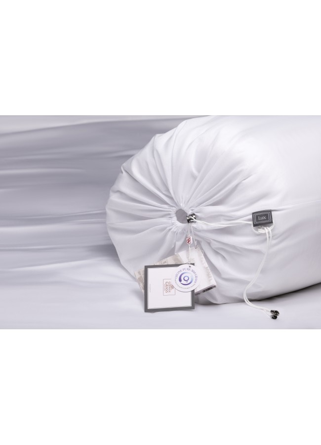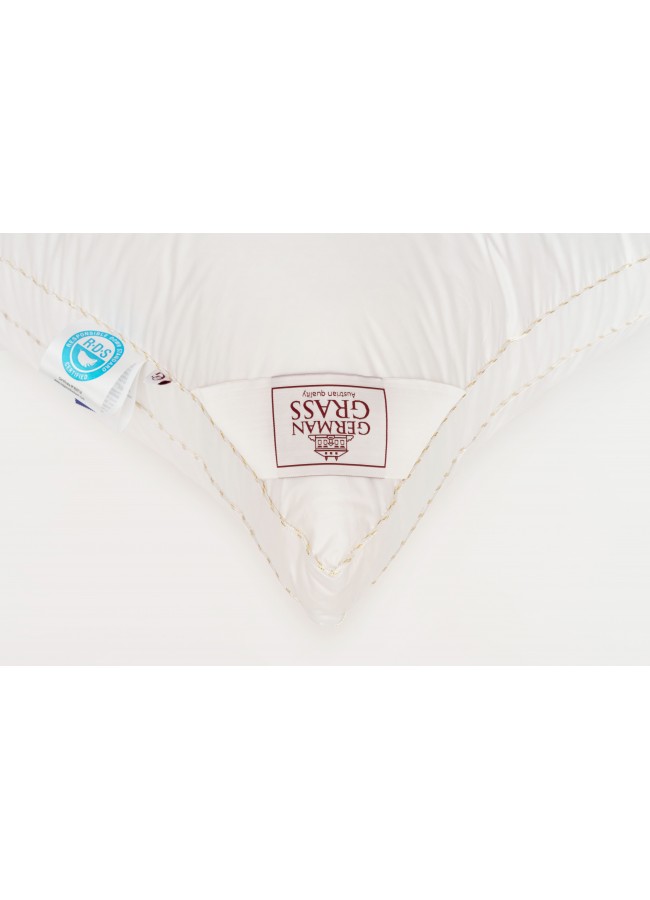 Немецкий хлопковый сатин высочайшей плотности соткан из тончайших нитей (Premium Satin - Nе 120/120 493 ТС) и прошел финишную обработку SanProCare® Sensitive, обеспечивающую усиленную гигроскопичность и придающую ей «пуховую мягкость». Особо тонкий, мягкий и «нешуршащий» чехол обладает повышенной износостойкостью и предотвращает проникновение пылевых клещей внутрь изделий. Наполнителем служит пух высочайшего качества, отобранный на гусиных фермах Сибири, которая, по утверждению биологов, является зоной проживания гусей, носящих пух максимально больших размеров, что, безусловно, влияет на пуховую массу положительно и наполнитель имеет повышенный коэффициент упругости (Fill Power), достигающий значений в 850 ед.