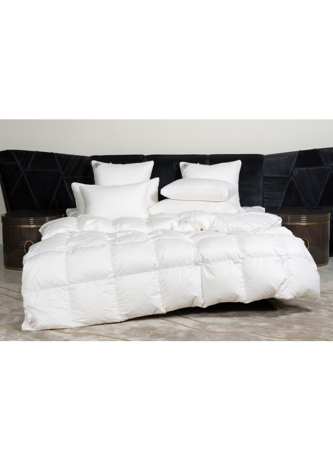 Коллекция King Down Grass — это королевство, в котором правит двуединая монархия тончайшего премиум-сатина и отборного гусиного пуха категории «Экстра». Немецкий хлопковый сатин высочайшей плотности соткан из тончайших нитей (Premium Satin - Nе 120/120 493 ТС) и прошел финишную обработку SanProCare® Sensitive, обеспечивающую усиленную гигроскопичность и придающую ей «пуховую мягкость». Особо тонкий, мягкий и «нешуршащий» чехол обладает повышенной износостойкостью и предотвращает проникновение пылевых клещей внутрь изделий. Наполнителем служит пух высочайшего качества, отобранный на гусиных фермах Сибири, которая, по утверждению биологов, является зоной проживания гусей, носящих пух максимально больших размеров, что, безусловно, влияет на пуховую массу положительно и наполнитель имеет повышенный коэффициент упругости (Fill Power), достигающий значений в 850 ед. Конструкция изделий коллекции и технология их производства не менее роскошны, чем применяемые в ней материалы: созданные вручную кассетные одеяла с бортиком, состоящие из равномерно заполненных пухом box-кассет, отличаются воздушностью и обеспечивают сбалансированный микроклимат. Широкий бортик в подушках создает дополнительную поддержку головы и мягко разгружает шею во время сна. В трехкамерных моделях внутреннее пухо-перовое ядро обеспечивает несминаемый объем и увеличивает срок службы изделий. Для обеспечения особых гигиенических свойств, изделия прошли обработку методом озонирования Ozone Pure 360 Grass. Допускается стирка при температуре до 30°С. Тип модели: Повышенной высоты Коллекция: Кинрос • King Down Доп. элементы: Бортик по периметру Отделка: Кант витой вискозный с люрексом Описание ткани: Супертонкий мако-сатин (Mako-ultra fine satine) «Bramscher Tuch». Ультратонкое полотно из премиального хлопка «Мако», изготовленное по эталонному стандарту «Bramscher Tuch». Обладает идеальной гладкостью, невесомостью и максимальной прочностью волокна. Наполнитель внутренний: 100% белый гусиный пух высшего качества Качество пуха: Высшая категория (800+ ед.) Исключительная объёмность и максимальная упругость при минимальном весе. Эталонный уровень комфорта и долговечности. Вес наполнителя (гр.): 600 Размер упаковки: 60x45x14