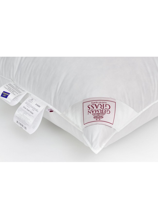 Подушки коллекции GRASS SILVER DOWN LINE наполнены пуховым наполнителем первой категории: серым пухом гусей Тулузской породы с добавлением мелкого перышка, что позволяет получить объём и упругость. Чехлы выполнены из немецкой ткани, прошедшей финишную обработку SanProCare® Sensitive, которая позволяет материалу усиленно поглощать и отдавать влагу. Ткани сертифицированы по OEKO-TEX® Standard 100 – международному стандарту безопасности текстильных изделий. Ткани, отмеченные маркировкой «Bramscher Tuch» – это безусловный знак качества и великолепный результат работы специалистов из города Бра?мше в Германии. Высочайшей оценки требует буквально все: от высококачественного сырья и тончайшей пряжи до заключительной эксклюзивной отделки тканей. Сочетание тонкой ткани и серого пуха придают изделиям серебристый оттенок, что легло в основу названия коллекции. Рекомендована стирка при температуре до 30°С.