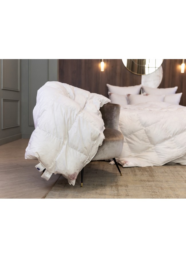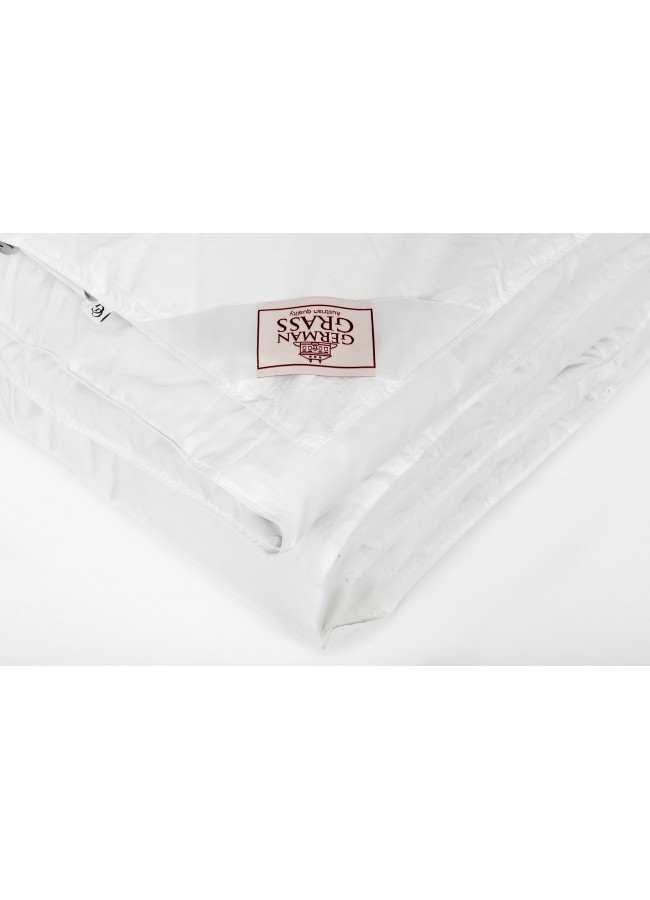 Кассетные пушистые одеяла коллекции GRASS SILVER DOWN LINE наполнены серым пухом гусей Тулузской породы категории "Экстра". Чехлы выполнены из немецкой ткани, прошедшей финишную обработку SanProCare® Sensitive, которая позволяет материалу усиленно поглощать и отдавать влагу. Ткани сертифицированы по OEKO-TEX® Standard 100 – международному стандарту безопасности текстильных изделий. Ткани, отмеченные маркировкой «Bramscher Tuch» – это безусловный знак качества и великолепный результат работы специалистов из города Бра?мше в Германии. Высочайшей оценки требует буквально все: от высококачественного сырья и тончайшей пряжи до заключительной эксклюзивной отделки тканей. Сочетание тонкой ткани и серого пуха придают изделиям серебристый оттенок, что легло в основу названия коллекции. Рекомендована стирка при температуре до 30°С.