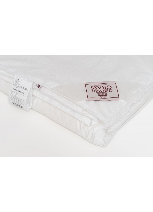 Paisley Silk Grass – это лимитированная коллекция подушек и одеял, изготовленных вручную из натурального шелкового наполнителя высшего качества Mulberry. Ткань изделий - жаккардовый сатин высокой плотности цвета белого жемчуга из 100% Egyptian COTTON. Ручной процесс изготовления позволяет тщательно контролировать качество производства на каждом этапе, что вкупе с прекрасными материалами определяет высокий уровень изделий. Мы не рекомендуем стирать одеяла и подушки, допускается только сухая чистка изделий.