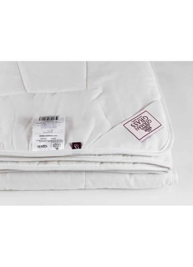 Wash-наполнители для одеял проходят многоступенчатую переработку, получая при этом гибкие и прочные пласты, которые выдерживают многократные стирки в стиральных машинах. Сатин из натурального хлопка имеет Сертификат Oeko-Tex® Standard 100, который подтверждает отсутствие в ткани веществ, опасных для здоровья человека. Одеяла изготовлены вручную для сохранения пышности наполнителя. Стирка при температуре до 30С°.