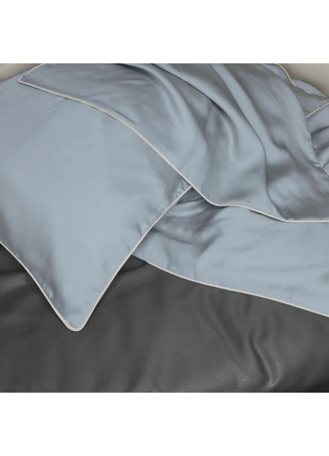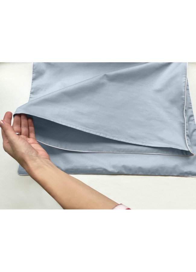 Дымчато-синий цвет или Smoky blue идеально сочетается со светлыми тонами, которые подчеркивают его благородство и раскрывают таинственную глубину оттенка. Наволочка имеет клапан и выполнена из премиальной ткани Luxe-сатин, которая соткана из длиноволокнистого хлопка высшего сорта и обладает пленительными переливами. В качестве декоративного украшения выступает нежный кант цвета экрю.