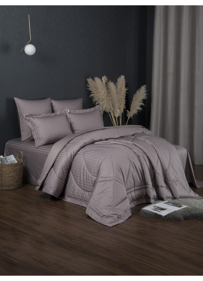 Новинка Триумфальная коллекция. Stripe Le-Man от KAZANOV.A. Египетский страйп-сатин в ритме тихой роскоши! Stripe Le-Man — это сочетание рисунка ткани и зеркального Дуэта силуэтов стежки! ? Создана из широких и узких полос, как у обладателя легендарных полос победителя, на капоте гоночного Болида. ? Ткань соткана из тончайших нитей Египетского хлопка по авторскому заказу - в уникальном дизайне для этой коллекции! Stripe Le-Man уносящий в стремящийся ритм жизни, после пробуждения две половины, представленные в силуэтах рисунка стежки, где равные усиливают друг друга — как пара, где важны доверие и единый ритм — задуманный создателем этой коллекции! Премиальная коллекция комплектов постельного белья со стёгаными одеялами от KAZANOV.A. — чувство абсолютного комфорта и свободы в динамике Le Mans. Отделка задаёт характер: ? Ювелирная подпись Fleur-de-Lis из высококачественных страз — на одеяле и наволочках 50?70 ? Стёжка одеяла - два силуэта в зеркальном дуэте ? Декоративная вышивка по ушку наволочек 50*70 Состав и материалы: ? Ткань комплекта: 100% египетский хлопок, страйп-сатин ? Наполнитель одеяла: 100% эковолокно Микрогель — лёгкий, гипоаллергенный, с равномерным распределением тепла и комфортной терморегуляцией. Монохромная палитра цветов переливается в оттенках миража: ? капучино орхидея ? платина лаванда ? графит сапфир ? индиго Комплектации: ? Евро: одеяло 200?220 (1) наволочки 50?70 (2) наволочки 70?70 (2) простыня 245?260 (1) ? Семейное: одеяло 155?210 (2) наволочки 50?70 (2) наволочки 70?70 (2) простыня 245?260 (1) ? Полуторное: одеяло 155?210 (1) наволочка 50?70 (1) наволочка 70?70 (1) простыня 160?220 (1) Уход: ? деликатная стирка при 30 °C ? легко стирается и быстро сохнет Упаковка: ? дизайнерская коробка KAZANOV.A.; выкладка Handmade подчёркивает статус коллекции и делает её безупречным подарком Текстильная продукция KAZANOV.A. — эталон качества и верность традициям!