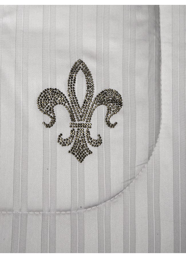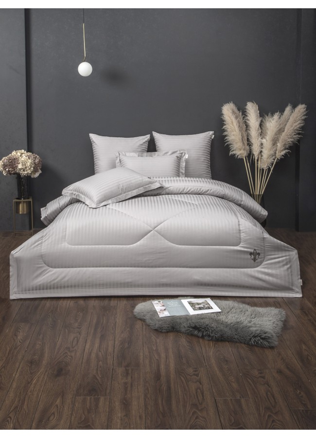 Stripe Royal от KAZANOV.A. Чистота формы. Совершенство линий. Stripe Royal — премиальная коллекция постельного белья со стёгаными одеялами: современное звучание классики в эстетике KAZANOV.A. Stripe Royal из 100% египетского хлопка — как клавиши рояля, собранные в изысканную мелодию спальни. Здесь есть тонкая игра света и тени: полосы ведут взгляд и настраивают на баланс и гармонию погружая в королевский сон. Рисунок стежки вторит этому звучанию и завершает архитектуру образа. Отделка задаёт характер: ? Ювелирная подпись Fleur-de-Lis из высококачественных страз — на одеяле и наволочках 50?70 ? Стёжка одеяла - функциональная эстетика ? Декоративная вышивка по ушку наволочек 50*70 Состав и материалы: ? Ткань комплекта: 100% египетский хлопок, страйп-сатин ? Наполнитель одеяла: 100% эковолокно Микрогель — лёгкий, гипоаллергенный, с равномерным распределением тепла и комфортной терморегуляцией. Монохром в нюансах: ? капучино ? пыльная роза ? платина ? бежевый крем ? серебро ? графит ? ниагара Комплектации: ? Евро: одеяло 200?220 (1) наволочки 50?70 (2) наволочки 70?70 (2) простыня 245?260 (1) ? Семейное: одеяло 155?210 (2) наволочки 50?70 (2) наволочки 70?70 (2) простыня 245?260 (1) ? Полуторное: одеяло 155?210 (1) наволочка 50?70 (1) наволочка 70?70 (1) простыня 160?220 (1) Уход: ? деликатная стирка при 30 °C ? легко стирается и быстро сохнет Упаковка: ? дизайнерская коробка KAZANOV.A.; выкладка Handmade подчёркивает статус коллекции и делает её безупречным подарком Текстильная продукция KAZANOV.A. — эталон качества и верность традициям!
