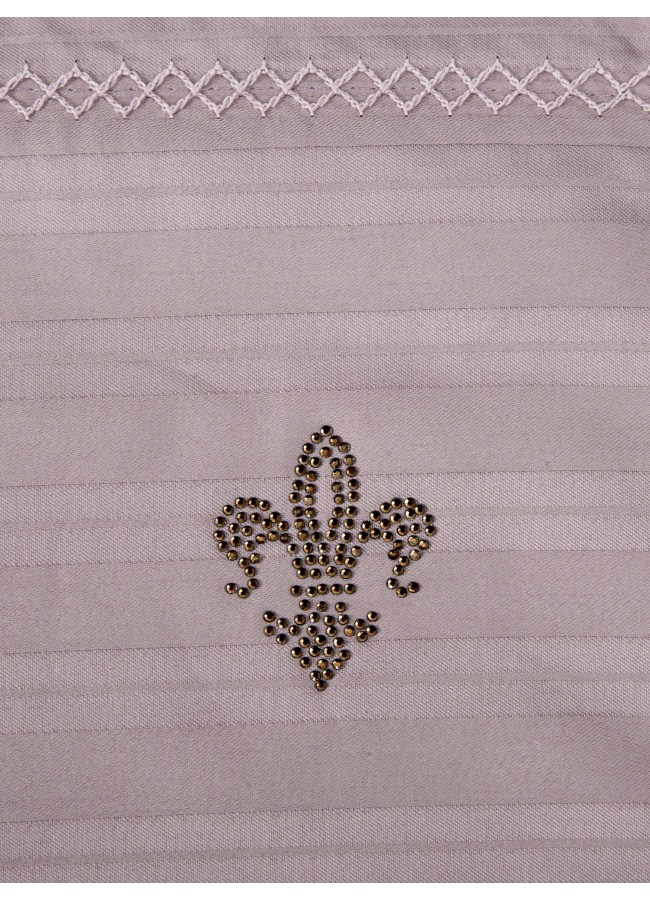 Stripe Royal от KAZANOV.A. Чистота формы. Совершенство линий. Stripe Royal — премиальная коллекция постельного белья со стёгаными одеялами: современное звучание классики в эстетике KAZANOV.A. Stripe Royal из 100% египетского хлопка — как клавиши рояля, собранные в изысканную мелодию спальни. Здесь есть тонкая игра света и тени: полосы ведут взгляд и настраивают на баланс и гармонию погружая в королевский сон. Рисунок стежки вторит этому звучанию и завершает архитектуру образа. Отделка задаёт характер: ? Ювелирная подпись Fleur-de-Lis из высококачественных страз — на одеяле и наволочках 50?70 ? Стёжка одеяла - функциональная эстетика ? Декоративная вышивка по ушку наволочек 50*70 Состав и материалы: ? Ткань комплекта: 100% египетский хлопок, страйп-сатин ? Наполнитель одеяла: 100% эковолокно Микрогель — лёгкий, гипоаллергенный, с равномерным распределением тепла и комфортной терморегуляцией. Монохром в нюансах: ? капучино ? пыльная роза ? платина ? бежевый крем ? серебро ? графит ? ниагара Комплектации: ? Евро: одеяло 200?220 (1) наволочки 50?70 (2) наволочки 70?70 (2) простыня 245?260 (1) ? Семейное: одеяло 155?210 (2) наволочки 50?70 (2) наволочки 70?70 (2) простыня 245?260 (1) ? Полуторное: одеяло 155?210 (1) наволочка 50?70 (1) наволочка 70?70 (1) простыня 160?220 (1) Уход: ? деликатная стирка при 30 °C ? легко стирается и быстро сохнет Упаковка: ? дизайнерская коробка KAZANOV.A.; выкладка Handmade подчёркивает статус коллекции и делает её безупречным подарком Текстильная продукция KAZANOV.A. — эталон качества и верность традициям!