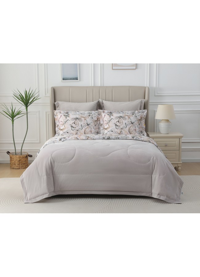 Откройте для себя новый стандарт домашнего уюта Представляем вам коллекцию комфортеров «Ренато» — воплощение изысканности и непревзойдённого комфорта. Каждый элемент этой коллекции создан с любовью к деталям и заботой о вашем сне. Революция в мире постельного белья Двустороннее одеяло — настоящее произведение искусства. Лицевая сторона из премиального макосатина 300ТС с изысканным цифровым принтом завораживает своей утончённой красотой. Изготовленный из отборного египетского хлопка, этот материал создаёт идеальный микроклимат для вашего сна. Велюровая сторона с благородным блеском подарит вам незабываемые ощущения нежности и уюта. Бархатистая текстура и мягкий блеск превращают каждое прикосновение в истинное наслаждение. Превосходное качество в каждой детали Макосатин — элитный хлопок высочайшей плотности, обеспечивающий непревзойдённую мягкость Велюр — роскошная вискоза с изысканным блеском Экофайбер — инновационный наполнитель с превосходными терморегулирующими свойствами Комплектация, созданная для вашего комфорта В коллекцию входят: Двустороннее одеяло в трёх размерах Простыня из благородного сатина Стильные наволочки с оригинальным дизайном Декоративные наволочки из нежного велюра Универсальность для любого сезона Благодаря современным материалам и продуманной конструкции, комплект «Ренато» станет вашим надёжным спутником в любое время года. Летом он подарит прохладу, а зимой — уютное тепло. Подарочная упаковка премиум-класса Каждый комплект «Ренато» поставляется в стильной подарочной коробке, что делает его идеальным выбором для особенного подарка. Забота о качестве Деликатная стирка при 30°C сохранит первозданную красоту и качество вашего комплекта на долгие годы. Погрузитесь в мир безупречного комфорта с коллекцией «Ренато» — где каждая деталь создана для вашего идеального сна. Подарите себе и своим близким незабываемые моменты уюта и наслаждения.